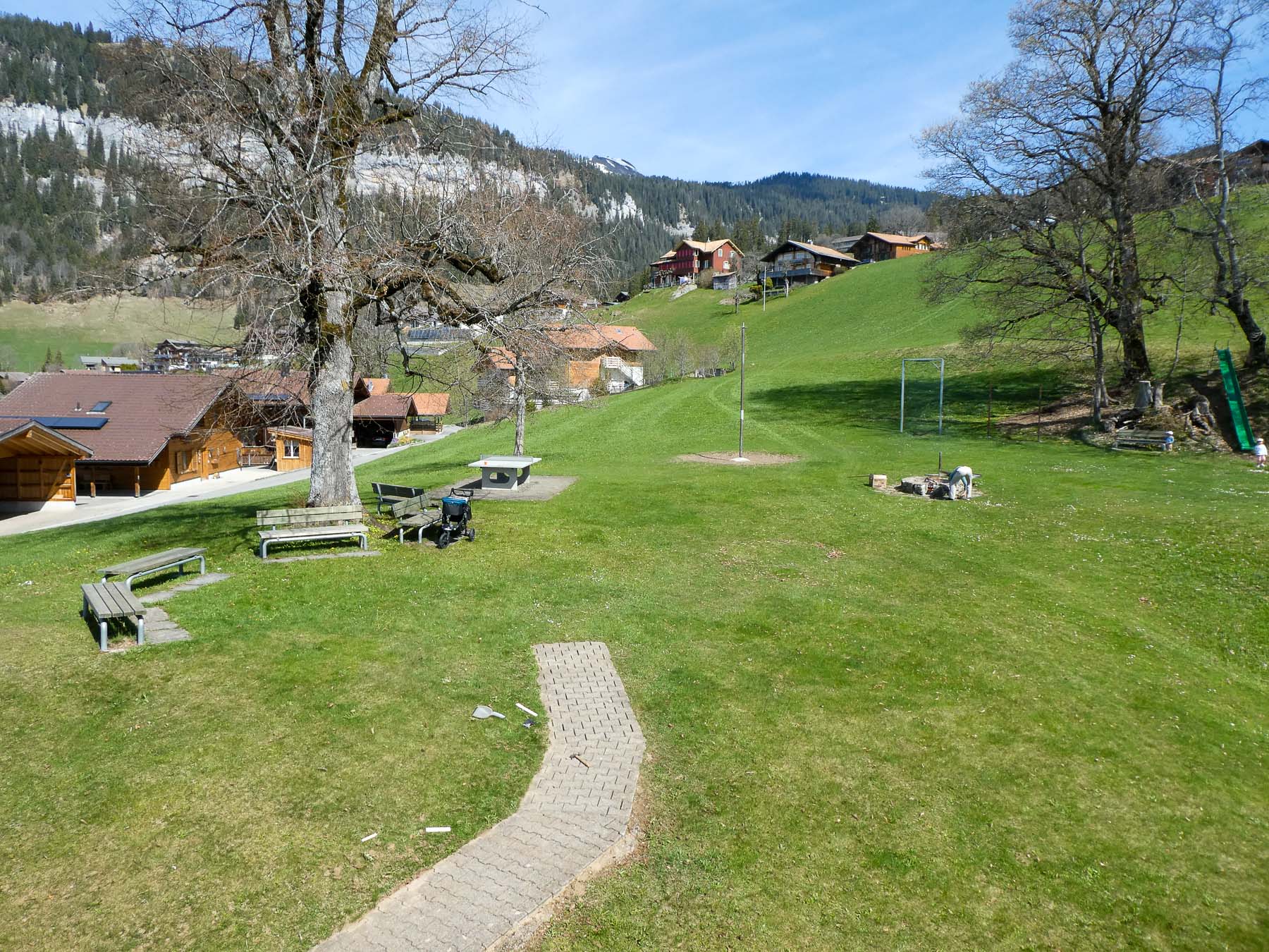 • Grosser Spielplatz mit Grill, Tischtennistisch, Reckstange, Rundlauf und Rutschbahn